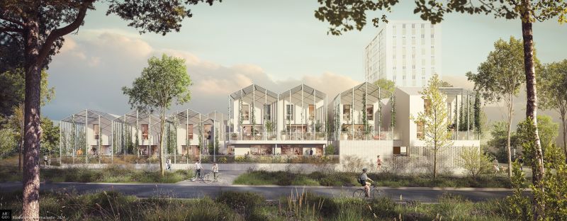 Conçu par Atelier Arcau, PRÉLUDE propose une architecture sobre, lumineuse et inspirée des serres horticoles du parc voisin.